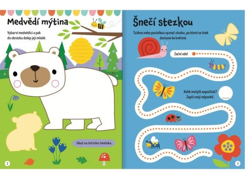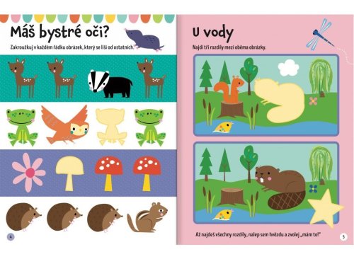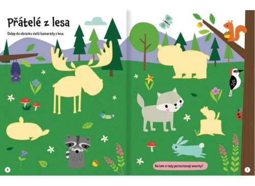 Vstup do lesa a poznej spoustu nových přátel v této roztomilé knize plné aktivit. Kresli, vybarvuj, doplňuj a nalepuj samolepky… no zkrátka se pojď dobře bavit!  Vítej v lese a pojď se seznámit s novými přáteli! V této knížce plné aktivit a her na tebe čeká spousta úkolů a výzev. Hledej rozdíly, pomoz šnečkovi najít správnou cestu ke květině nebo vystopuj názvy zvířátek ve změti písmenek. Dolepuj samolepky, vybarvuj obrázky a doplňuj! Tento sešit s roztomilými samolepkami a vytlačovací visačkou a puzzle ti zajistí mnoho zábavy!