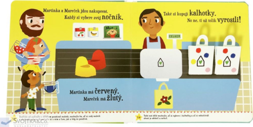 kniha obsahuje pohyblivé prvky oblíbené u dětí, ale také odborné rady pro rodiče kniha pomůže nejenom dětem, ale zejména jejich rodičům na každé dvoustraně najdete radu, jak postupně přeučovat své dítě od plenek na nočník pomozte dítěti s touto změnou