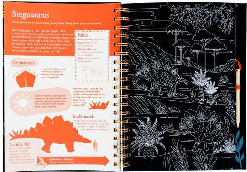 nápaditá knížka je rozdělena do dvou částí, v první části jsou nejrůznější fakta, údaje a zajímavosti, doplněna stránkami s vyškrabávacími obrázky, druhá část je poté plná kvízů, doplňování, spojování, kreslení či hledání.