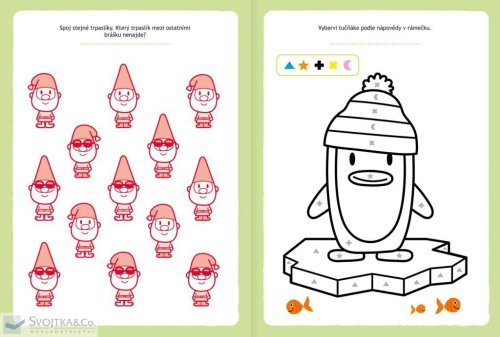 Pracovní sešit pro děti pomáhá rozvíjet jemnou motoriku, bystrost a logické uvažování. K plnění zábavných úkolů postačí tužka a pastelky. Máš dlouhou chvíli? Tak sáhni po této knize! První výzva: Dokážeš najít cestu bludištěm? Dále vybarvi obrázky podle zadaného klíče a bav se spojováním bodů nebo kreslením obrázků krok za krokem… Procvičíš své dovednosti a zapojíš kreativitu plno zábavných her v této knížce už na tebe čeká.