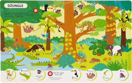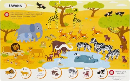 Hledej a poznávej s touto zvukovou knihou zvířata z celého světa! V různých prostředích, od savany přes moře až po hory, se seznámíš s jejich obyvateli a dozvíš se i zajímavé informace. Na každé straně této krásně ilustrované knížky poslouchej nejrůznější zvuky a poznej, která zvířata je vydávají. Ale neboj! Dostaneš k tomu i nápovědy, které ti zvířata představí, a i zde se dozvíš další zajímavosti ze zvířecí říše.