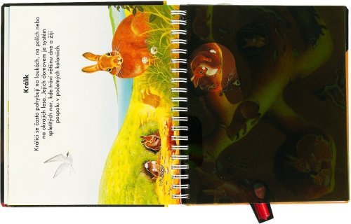 Pusť se do objevování tajuplného světa pod zemí. Vlož kouzelnou baterku mezi fóliovou stránku a černou stránku a "posviť si" do nor, úkrytů či hnízd králíků, krtků, žížal, bobrů či chroustů. Prohledej obrázky do nejdrobnějších detailů a zjisti o zvířatech mnoho zajímavostí. Počet stran: 24 + 6 průhledných. Vazba: Spirála. Rok vydání: 2024 ISBN: 978-80-256-3689-3