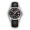 Pánské náramkové hodinky Napájení z baterie Průměr pouzdra 39,0 mm Pouzdro ve tvaru kruhu Ocelové pouzdro Stříbrná barva pouzdra Kožený tah ČERNÉ barva tahu Ručičkový ciferník Černá barva ciferníku Ciferník s dvanácti indexy Materiál skla - safírové sklo Odolné proti vodě během plavání Datum