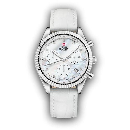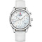 Dámské náramkové hodinky Napájení z baterie Průměr pouzdra 37,0 mm Pouzdro ve tvaru kruhu Ocelové pouzdro Stříbrná barva pouzdra Kožený tah Bílá barva tahu Ručičkový ciferník PERLEŤOVÁ barva ciferníku Ciferník s dvanácti indexy Materiál skla - safírové sklo Odolné proti vodě během sprchování a mytí Datum
