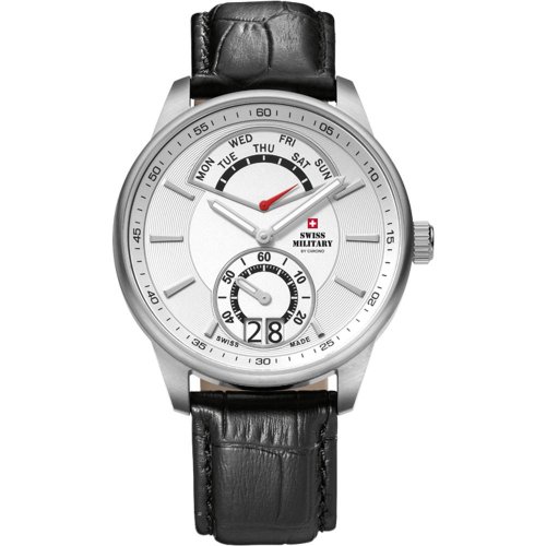 Pánské náramkové hodinky Napájení z baterie Průměr pouzdra 41,0 mm Pouzdro ve tvaru kruhu Ocelové pouzdro Stříbrná barva pouzdra Kožený tah ČERNÉ barva tahu Ručičkový ciferník Stříbrná barva ciferníku Ciferník s dvanácti indexy Materiál skla - minerální sklo Odolné proti vodě během sprchování a mytí Datum