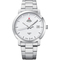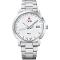 Pánské náramkové hodinky Napájení z baterie Průměr pouzdra 40,0 mm Pouzdro ve tvaru kruhu Ocelové pouzdro Stříbrná barva pouzdra Kovový tah Stříbrná barva tahu Ručičkový ciferník Bílá barva ciferníku Ciferník s dvanácti indexy Materiál skla - minerální sklo Odolné proti vodě během sprchování a mytí Datum
