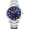 Pánské náramkové hodinky Napájení z baterie Průměr pouzdra 40,0 mm Pouzdro ve tvaru kruhu Ocelové pouzdro Stříbrná barva pouzdra Kovový tah Stříbrná barva tahu Ručičkový ciferník TMAVO MODRÁ barva ciferníku Ciferník s dvanácti indexy Materiál skla - minerální sklo Odolné proti vodě během sprchování a mytí Datum