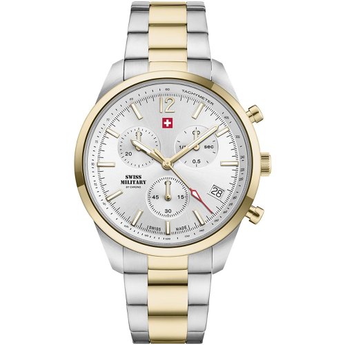 Pánské náramkové hodinky Napájení z baterie Průměr pouzdra 43,0 mm Pouzdro ve tvaru kruhu Ocelové pouzdro Stříbrná/zlatá barva pouzdra Kovový tah Stříbrná/zlatá barva tahu Ručičkový ciferník Stříbrná barva ciferníku Ciferník s dvanácti indexy Materiál skla - minerální sklo Odolné proti vodě během sprchování a mytí Datum