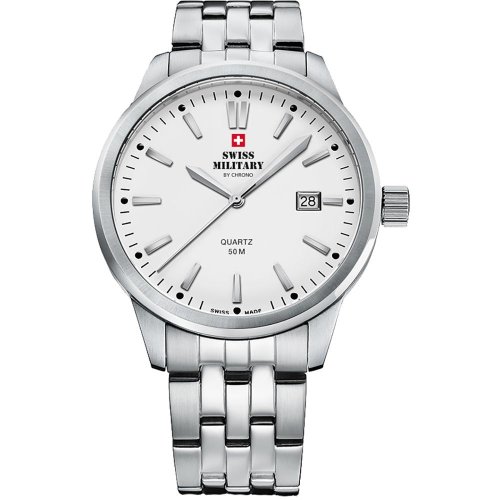 Pánské náramkové hodinky Napájení z baterie Průměr pouzdra 41,0 mm Pouzdro ve tvaru kruhu Ocelové pouzdro Stříbrná barva pouzdra Ocelový tah Stříbrná barva tahu Ručičkový ciferník Bílá barva ciferníku Ciferník s dvanácti indexy Materiál skla - minerální sklo Odolné proti vodě během sprchování a mytí Datum