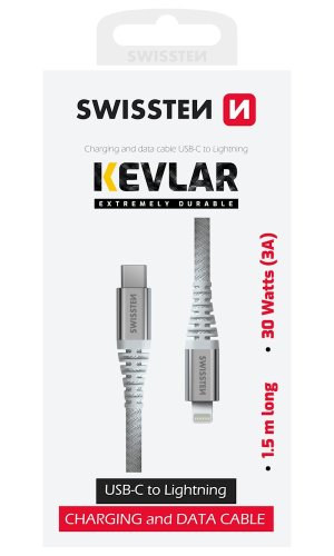 Datový kabel Kevlar SWISSTEN 71541013 USB C/Lightning 1,5 m PN 71541013