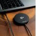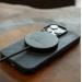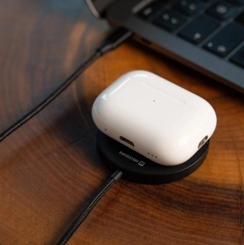 Kompaktní konstrukce z hliníku a silikonové gumy s průměrem 59 mm a tloušťkou jen 7 mm zajišťuje výborný odvod tepla, vysokou odolnost a příjemný dotek. Opletený USB-C kabel délky 1,5 m poskytuje dostatečnou svobodu při používání. Nabíječka umožňuje bezdrátově nabíjet také sluchátka AirPods včetně Pro 1. a 2. generace výkonem až 5 W.