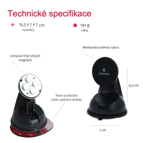 Magnetický držák pro mobilní telefon vyniká svoji univerzálností. Hlava držáku je opatřena silným magnetem, udrží váš telefon za každé situace. Součástí balení je 3M podložka pro lepší uchycení na hrubších površích.