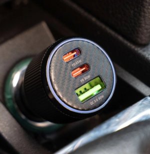 Profesionální autonabíječka vybavená třemi nabíjecími porty – dvěma USB-C s podporou Power Delivery 3.0 a jedním USB s podporou Quick Charge 4.0. Port USB-C poskytuje až 65 W, což je dostatečný výkon pro rychlé dobíjení notebooků, zatímco druhý port USB-C a USB nabízejí až 30 W pro tablety a smartphony.