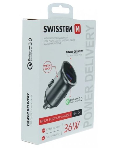 Elegantní kovová autonabíječka do zapalovače s výkonem až 36 W. Nabízí jeden výstup USB-C kompatibilní s Power Delivery pro iPhone 8 a novější a jeden výstup USB s podporou Quick Charge 3.0 pro Android.