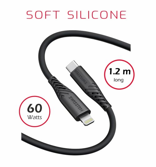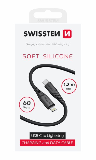 Datový kabel SWISSTEN SOFT SILICONE USB-C / lightning s délkou 1,2m a výkonem 60W a proudem až 3A. Baleno v blistru SWISSTEN.