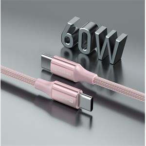 SWISSTEN DATOVÝ KABEL TEXTILE II USB-C / USB-C 1,5 M RŮŽOVÝ