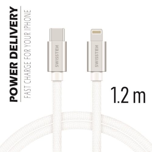 Datový kabel Swissten USB-C/Lightning s kvalitním textilním opletením.