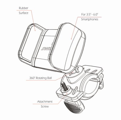 Držák na kolo pro smartphony o úhlopříčce 3,5" až 6" určený k uchycení na řidítka. Disponuje fixační gumou, která zabezpečuje, aby telefon nevypadl z čelistí.