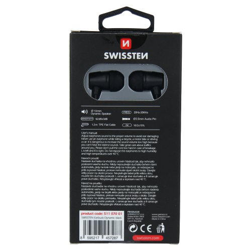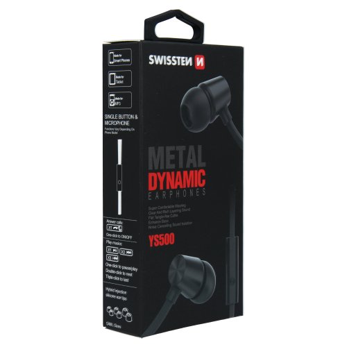 Headset do uší SWISSTEN Earbuds Dynamic YS500 se vyznačuje kovovým tělem, díky kterému je zajištěna odolnost a stylový vzhled. Oblíbenou hudbu si dopřejete kdykoli na cestách ve vysoké kvalitě. Současně vám umožní také vyřizování telefonních hovorů pomocí integrovaného mikrofonu a tlačítka umístěného na kabelu. Pro připojení slouží standardní 3.5mm jack, takže headset SWISSTEN Earbuds Dynamic YS500 je kompatibilní se širokým spektrem zařízení, ať už jde o smartphony, tablety, MP3 přehrávače apod.
