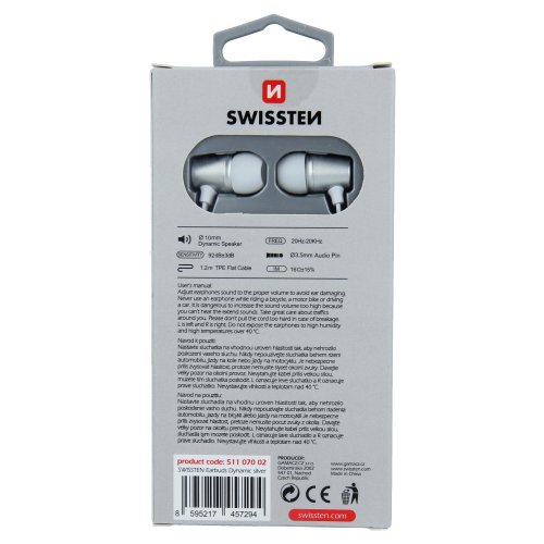 Headset do uší SWISSTEN Earbuds Dynamic YS500 se vyznačuje kovovým tělem, díky kterému je zajištěna odolnost a stylový vzhled. Oblíbenou hudbu si dopřejete kdykoli na cestách ve vysoké kvalitě. Současně vám umožní také vyřizování telefonních hovorů pomocí integrovaného mikrofonu a tlačítka umístěného na kabelu. Pro připojení slouží standardní 3.5mm jack, takže headset SWISSTEN Earbuds Dynamic YS500 je kompatibilní se širokým spektrem zařízení, ať už jde o smartphony, tablety, MP3 přehrávače apod.