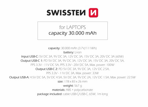 SWISSTEN 133 W Power Delivery 30000 mAh