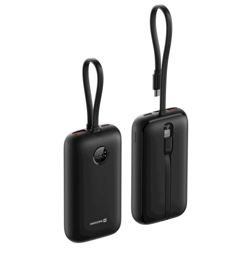 Powerbanka SWISSTEN VOLTBOX tak celkově nabízí port USB-C, port USB a integrované USB-C a Lightning kabely. Je tak vhodná pro napájení jak zařízení s operačním systémem Android, tak iOS. Kapacita 10 000 mAh je ideální pro běžné použití a nabití smartphonu, tabletu, případně drobné nositelné elektroniky jako například bezdrátová sluchátka apod. Praktický LED displej poskytuje informace o zbývající kapacitě baterie, takže hned vždy víte, kdy je čas na opětovné dobití.