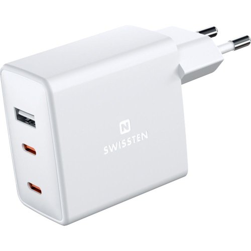 Síťový adaptér Swissten GaN 2× USB-C + 1× USB 70W bílý PN 22054100