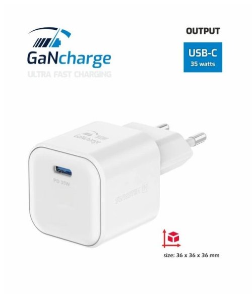 Univerzální napájecí adaptér s výkonem až 35 W. Pro nabíjení zařízení je k dispozici konektor USB-C. Adaptér podporuje protokol rychlého nabíjení Power Delivery. Použitá GaN technologie snižuje tvorbu tepla, čímž zvyšuje účinnost nabíječky při zachování kompaktních rozměrů (přibližně 3,6 × 3,6 × 3,6 cm). Samozřejmostí je ochrana proti zkratování, přepětí, přetížení nabíjení a vysoké teplotě.