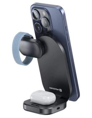 Nabíječka SWISSTEN MagBase kombinuje pokročilý standard Qi2 s praktickou skládací konstrukcí. Díky magnetickému vystředění kompatibilnímu s MagSafe zajišťuje perfektní zarovnání a stabilní nabíjení výkonem až 15 W pro iPhone. Kompaktní tělo v matně černém provedení s tmavě šedými detaily působí prémiově na pracovním stole i na cestách.