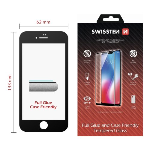 Ochranné sklo CASE FRIENDLY je navrženo tak, aby se dalo použít v kombinaci s jakýmkoliv pouzdrem a zároveň maximálně chránilo smartphon až do krajů displeje. Sklo má oleofobní vrstvu, která zabraňuje ulpívání otisku prstů a tvrdost 9h. Je lepené na displej po celé ploše.Baleno v blistru SWISSTEN