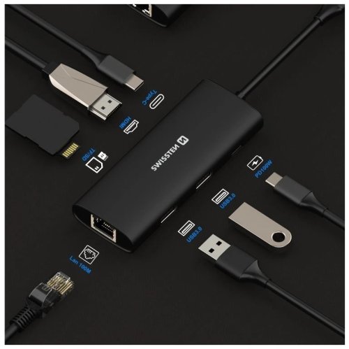 Odolná a kompaktní dokovací stanice SWISSTEN USB-C HUB 8v1, se kterou rozšíříte konektivitu svého notebooku nebo tabletu. Poskytne vám celkem 8 portů pro připojení periferních zařízení, které potřebujete pro flexibilní pracovní činnost i multimediální zábavu. Dokovací stanice SWISSTEN USB-C HUB 8v1 44040203 připojuje pomocí portu USB-C, disponuje rozhraním HDMI, které podporuje rozlišení 4K při 30 Hz, dvojicí portů USB 3.0 s vysokou přenosovou rychlostí pro připojení flash disku, USB-C pro napájení s technologií Power Delivery nebo USB-C 3.0. Nechybí ani praktická čtečka SD karet, respektive microSD karet, a nakonec také port RJ-45 pro spolehlivé připojení k internetu pomocí kabelu. Díky kompaktnímu hliníkovému designu se snadno přenáší, a tak základní porty můžete využívat kdekoli na cestách.