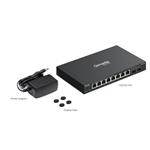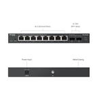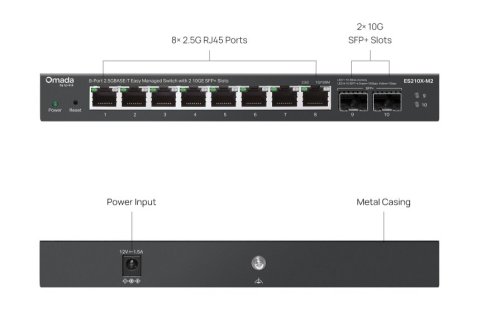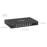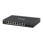 Switch nabízí osm 2,5Gb/s RJ45 portů s automatickou detekcí rychlosti a dva 10Gb/s SFP+ sloty pro vysokorychlostní uplink nebo propojení serverů. Díky přepínací kapacitě 80 Gb/s a přenosové rychlosti 59,52 Mpps zvládne bez problémů i datově náročné aplikace, jako je NAS úložiště, virtualizace nebo 4K video produkce.