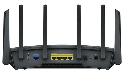 Vysokorychlostní třípásmový Wi-Fi 6 router s podporou standardů 802.11a/b/g/n/ac/ax, který v pásmu 5 GHz nabízí rychlost bezdrátového přenosu až 4800 Mb/s + 1200 Mb/s a v pásmu 2,4 GHz až 600 Mb/s. Disponuje šesti anténami pro široké bezdrátové pokrytí. Port 2,5GbE konfigurovatelný pro použití v síti WAN nebo LAN podporuje superrychlé internetové tarify nebo výkonná zařízení. Poháněn je systémem Synology Router Manager (SRM), intuitivním operačním systémem vytvořeným pro zabezpečení a výkon.