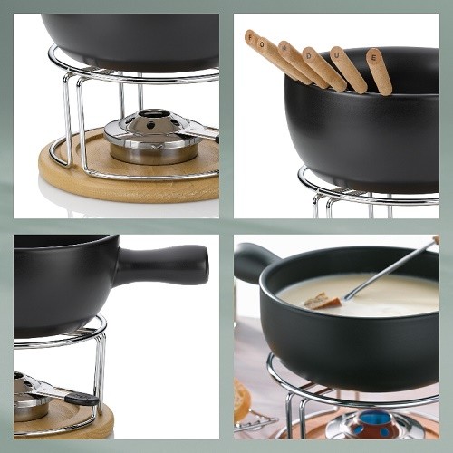 Sýrové fondue NATURA keramika, nerez, chrom, dřevo KL-61306