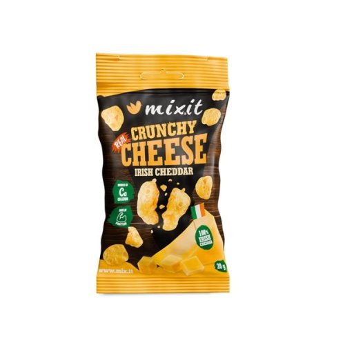 Sýrové krekry Mixit - kvalitní irský cheddar s jeho specifickou plnou chutí a usušený speciálním procesem, výsledkem je extra křupavý snack do kapsy plný bílkovin a vápníku