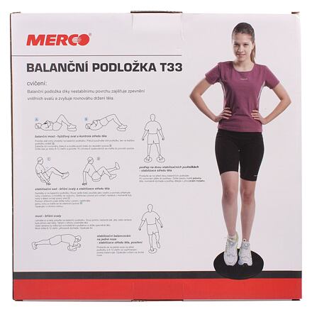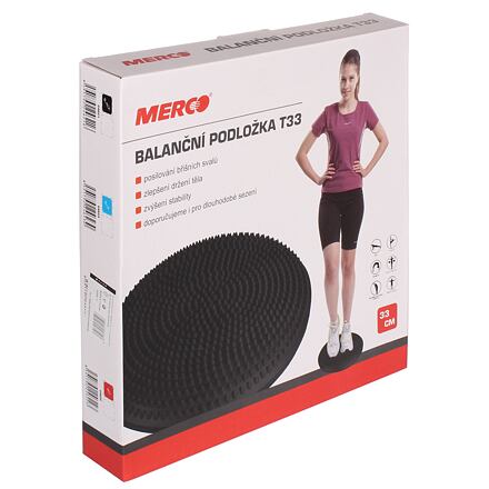 Balanční podložka Merco T33 je vhodná především pro lidi, kteří mají sedavé zaměstnání a chtějí předejít bolestem zad. Díky sezení na balanční podložce budete procvičovat stabilizační svaly a vzpřimovač páteře po celou dobu sezení aniž byste o tom věděli. Dále tato podložka vede ke správnému držení těla a je vhodná pro všechny v každém věku. Jak si polštářek nafouknete, nebo kterou stranou ho otočíte je už jen a jen na Vás. Z jedné strany je balanční polštář hladký, z té druhé má masážní bodlinky. Čím více vzduchu, tím je náročnost udržovat rovnováhu nižší. Samotná podložka váží 1 kg a je určena pro maximální zatížení 120 kg. K nafouknutí podložky je zapotřebí pumpička s jehlou (nejsou součástí balení).