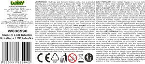Kreslicí LCD tabulka. Velikost 30 cm. Obsahuje tablet, pero na kreslení, tlačítko na smazání obrazovky a zámek obrazovky. 1xCR2032 baterie součástí.