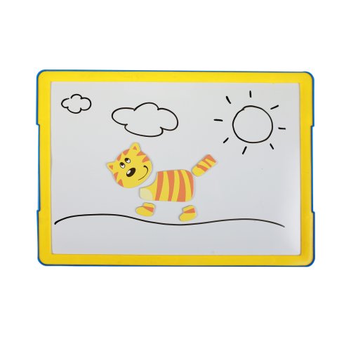 Skvělá magnetická tabulka s obrázky pro kreativní dětičky. Vytvoř si obrázek podle své fantazie! Pokud si nebudeš vědět rady, můžeš pochytit inspiraci v šablonách, které jsou vyobrazeny na zadní straně obalu. Balení obsahuje cca 105 magnetických kousků. Součástí je fix, kterým můžeš na tabulku psát či kreslit. Tabulka má rozměr 29 x 21 cm a je opatřena praktickým stojánkem na stůl. Tato hračka rozvíjí smyslové vnímání, motoriku a trpělivost.