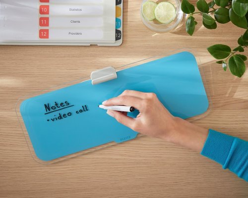 Skleněná tabulka a stolní podložka v jednom dokonale zapadá mezi klávesnici a monitor a slouží pro snadné pořizování poznámek