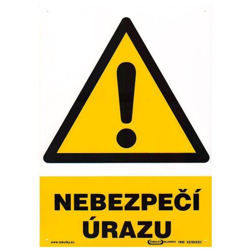 Tabulka - NEBEZPEČÍ ÚRAZU ! 210 x 297 mm, (A 4), PH. rozměry: 210 x 297 mm materiál: plast Bezpečnostní tabulka, jejímž účelem je opatření a snížení rizik.