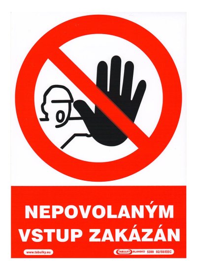 Tabulka - NEPOVOLANÝM VSTUP ZAKÁZÁN 148 x 210 mm, (A 5), samolepicí. rozměry: 148 x 210 mm Samolepicí bezpečnostní tabulka, jejímž účelem je opatření a snížení rizik.