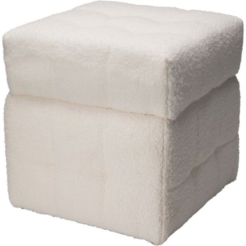 Praktický taburet s úložným prostorem, vyrobený z kombinace MDF, překližky a měkkého materiálu Teddy, vhodný pro uložení hraček nebo drobných předmětů.
