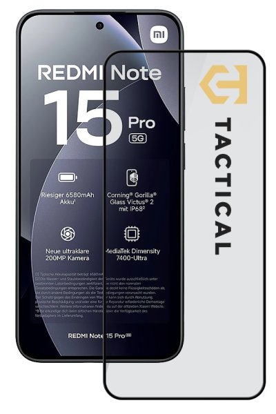 Tactical Glass Shield 5D Sklo pro Xiaomi Redmi Note 15 Pro 5G Černá
