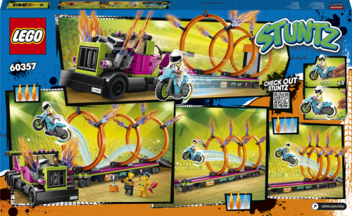 Vrhněte se do akce se stavebnicí Tahač s ohnivými kruhy od LEGO® City (60357). Součástí této akční stavebnice pro děti od 6 let je parádní tahač, kterému z výfuku šlehají plameny, plochý přívěs s vyklápěcí rampou na vypouštění a 3 upravitelné ohnivé kruhy. Stačí přidat kaskadérskou motorku se setrvačníkem, řidiče tahače a 2 minifigurky jezdců Stuntz a čekají vás hodiny akcí nabitého hraní.