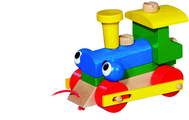 Dřevěná tahací mašinka je složená z montážních částí a přiloženým dřevěným šroubovákem.