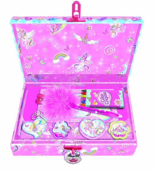 Uložte si své poklady do tajné dopisní sady a šperkovnice s krásným designem se zámkem. Skvělý doplněk pro malé princezny a parádnice. Výrobek je z pevného, odolného papíru s hladkou povrchovou úpravou. Vhodné pro děti od 6ti let.