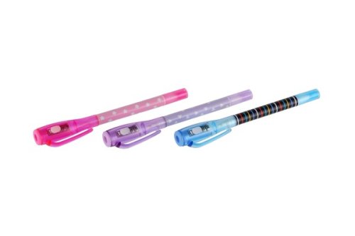 Piš tajné vzkazy perem s neviditelným inkoustem. Tvé poznámky uvidí jen ten, kdo na ně posvítí UV světlem, které je v zavírání tajného pera. Pero je oboustranné, takže můžete psát klasickým nebo neviditelným inkoustem. Velikost: 15 cm