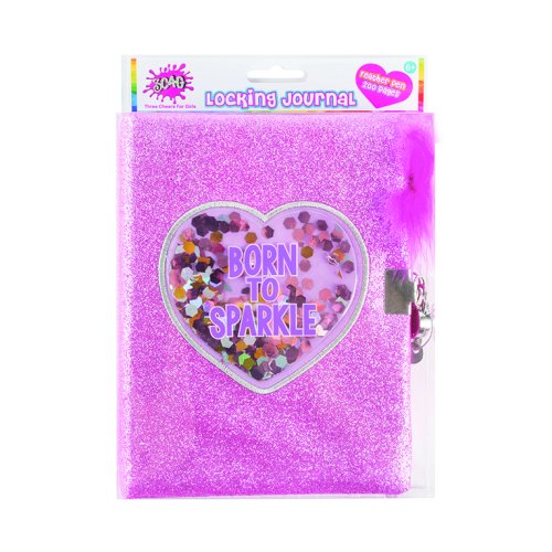 Deník se třpytivými a tvrdými deskami. Obsahuje 160 barevných stránek, pero s pírkem a zámek s klíčky. Vhodné od 6 let.