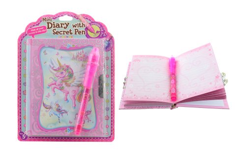 Krásný zápisník pro holčičky. Balení obsahuje speciální pero, díky němuž můžete napsat cokoliv, ale vše bude vidět pouze pod speciálním světlem na konci pera. Obsahuje 2 klíčky. Rozměry diáře cca 11x14x2 cm. Výrobek není hračka.