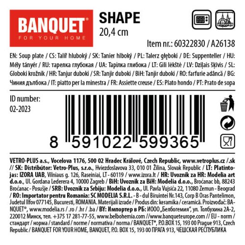Talíř hluboký 20,4 cm, SHAPE, keramický.